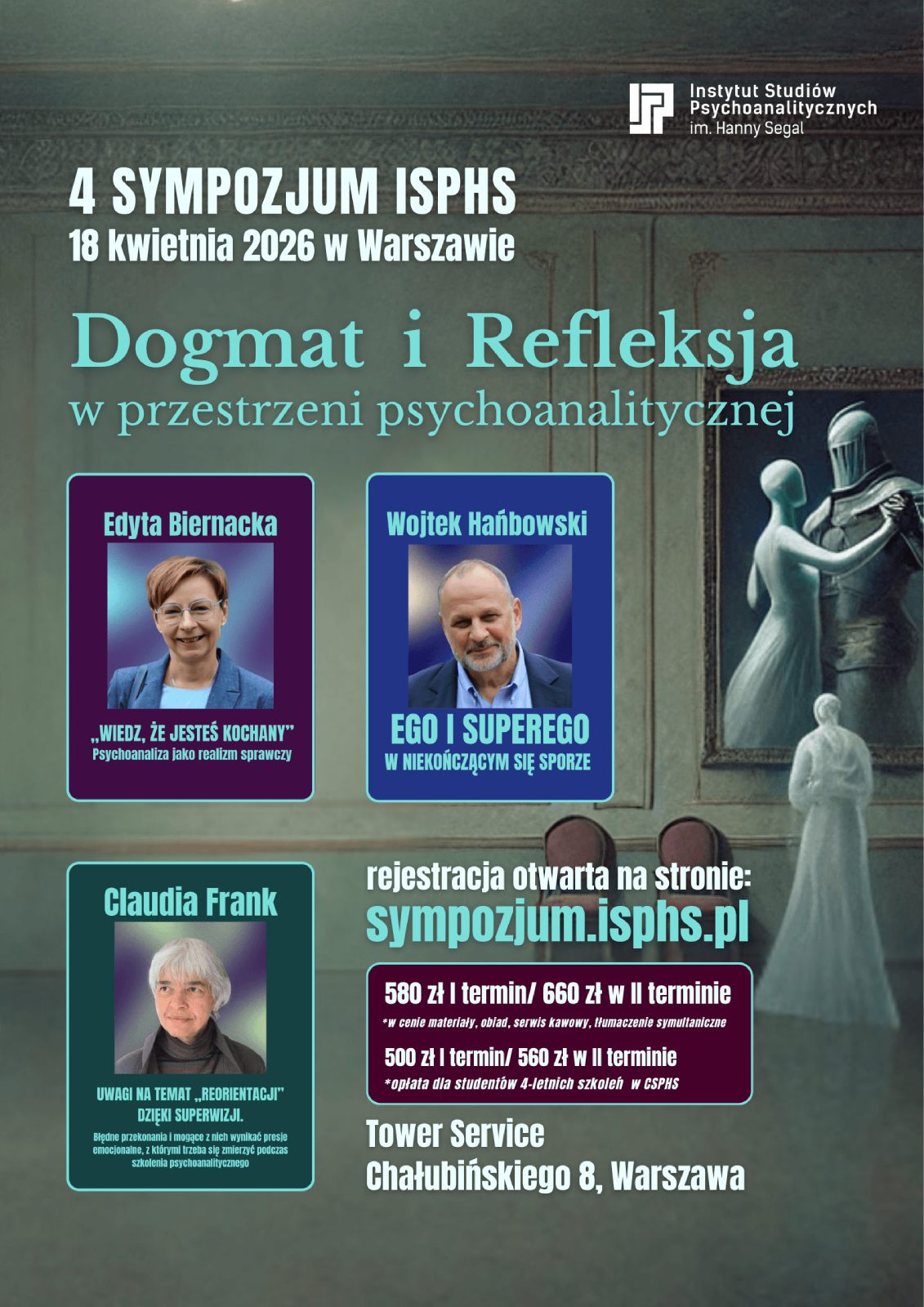 Instytut Studiów Psychoanalitycznych im. Hanny Segal 697 485 747 kontakt@isphs.pl ul. Lanciego 9H, 02-792 Warszawa KRS: 0000482352 NIP: 585-146-78-29 REGON: 221994104 Sekretariat czynny: Pon-Pt: 8:00 – 14:00 Konto bankowe: Nr konta: 23 1020 4027 0000 1302 1560 3095